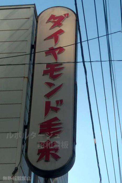 埼玉県春日部市あたりの手芸店にあった「ダイヤモンド毛糸」の看板。