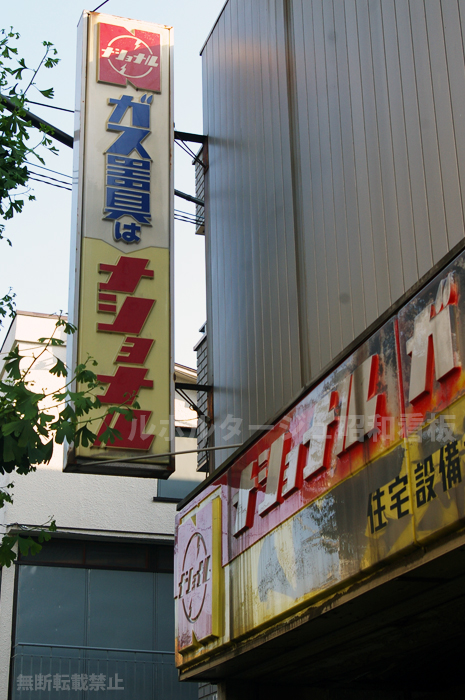 東京都墨田区あたりの住宅設備店のナショナルのガス器具の看板。