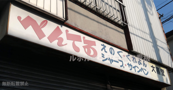 東京都三鷹市あたりの文具店跡にあった「ぺんてる」の看板。