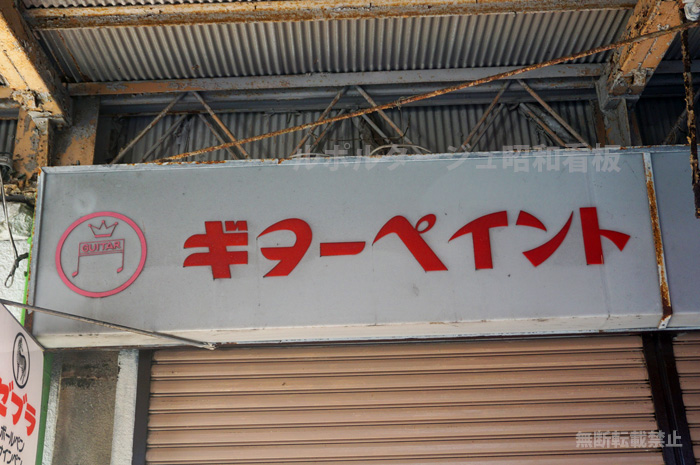 石川県金沢市の書店跡に残されている寺西化学工業「ギターペイント」 の看板。