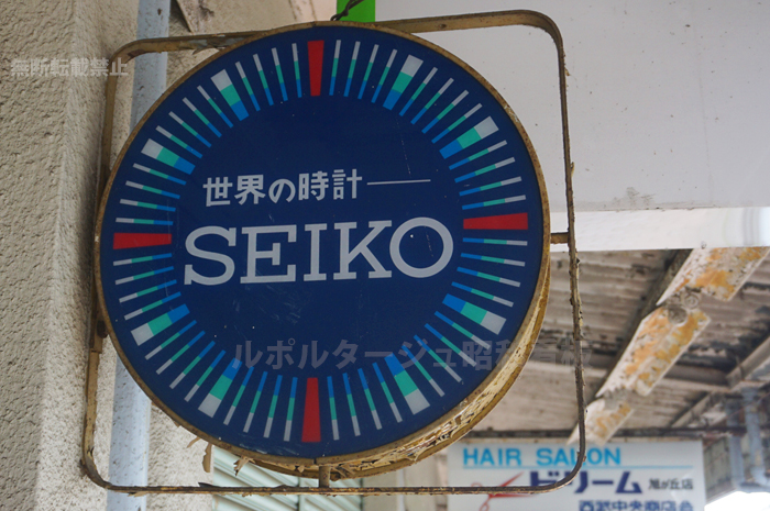 埼玉県新座市の時計店に設置されている「世界の時計 セイコー」 の看板。