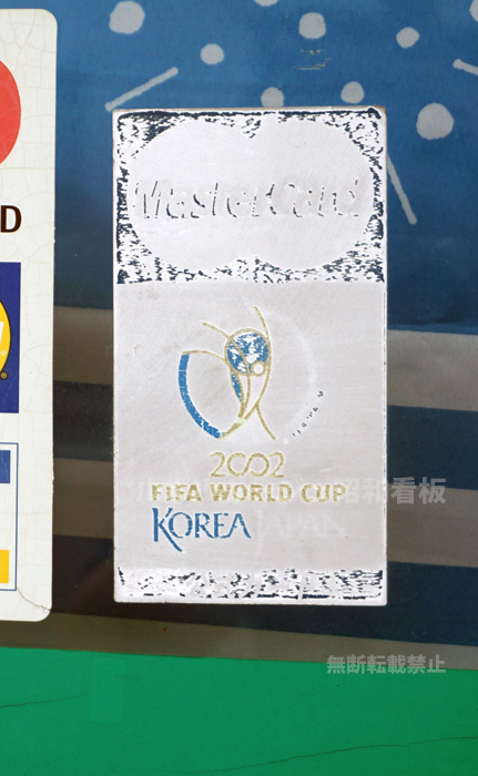 埼玉県新座市の家電店に貼られている「マスターカード 2002FIFA WORLD CUP KOREA JAPAN」 のステッカー。