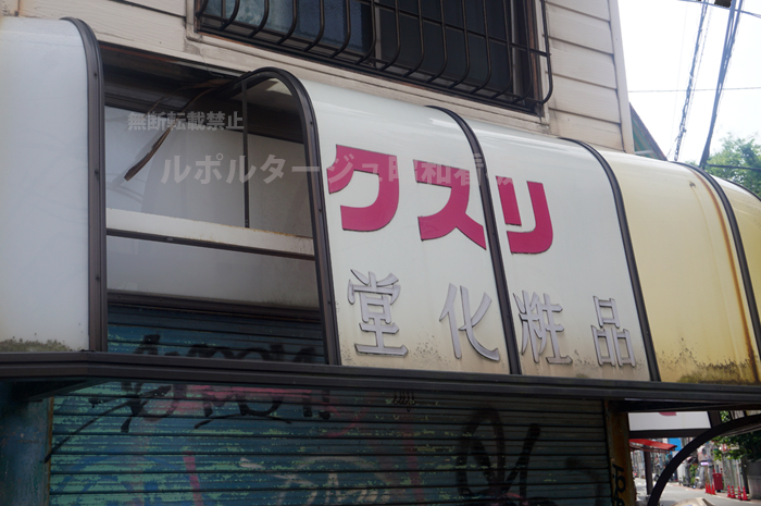 東京都台東区の薬店跡に残されている「資生堂化粧品」の切り文字。