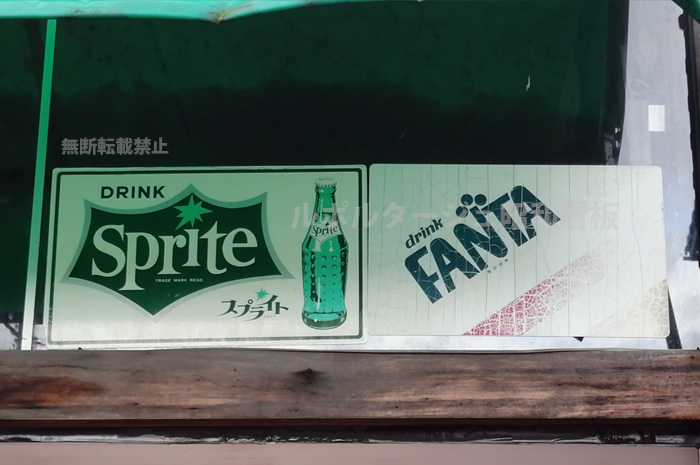 石川県金沢市の菓子店跡に残されているコカ・コーラボトリング「スプライトとファンタ」の看板。